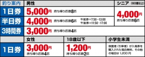 - 入場券は釣りを始める前にご購入のうえ確認しやすい所に付けてください。