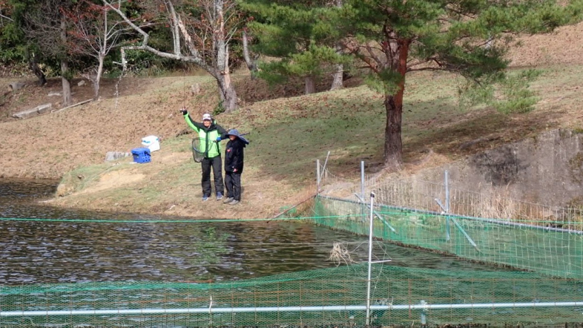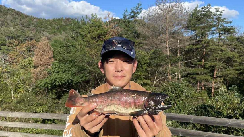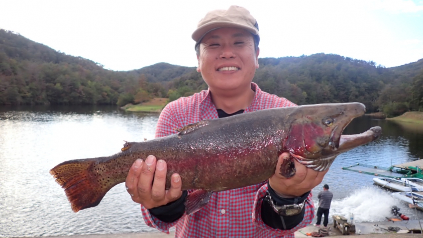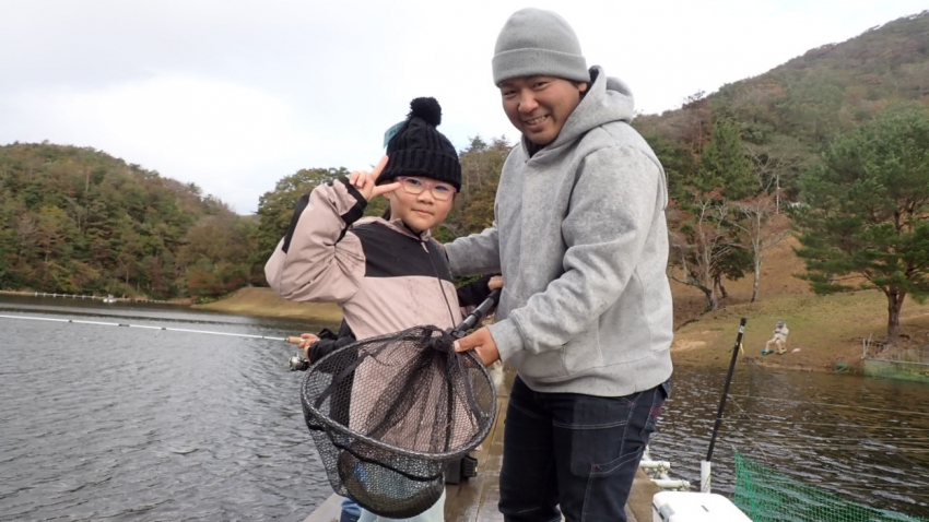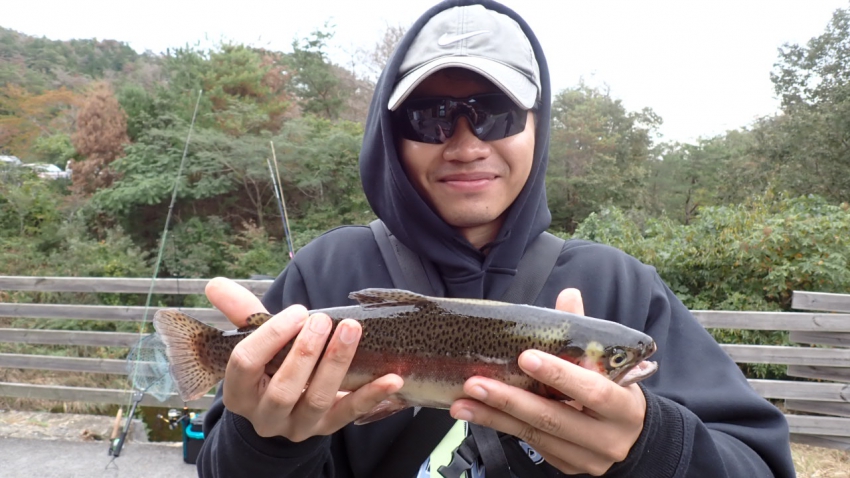 僕はえん堤奥の方で芸北うまうまサーモンをGET~~✨✨