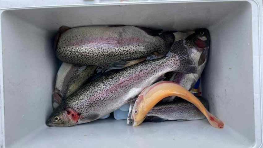 トラック直接放流では芸北ハイパーヤマメの集中放流~~!!✨✨確実に。。。ハイパーヤマメのみで300匹くらいは入りました✨✨プラス芸北うまうまサーモンでっす!!90%のお魚は。。。明日以降にキャリーオーバー!![釣果情報]