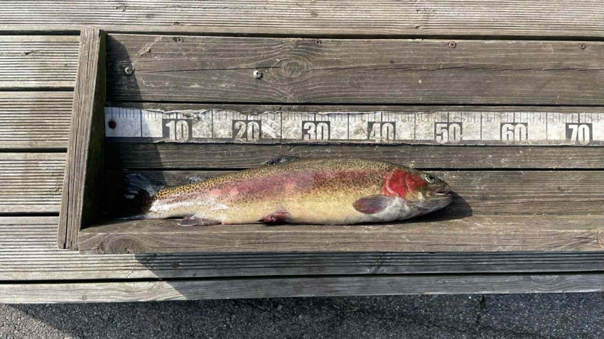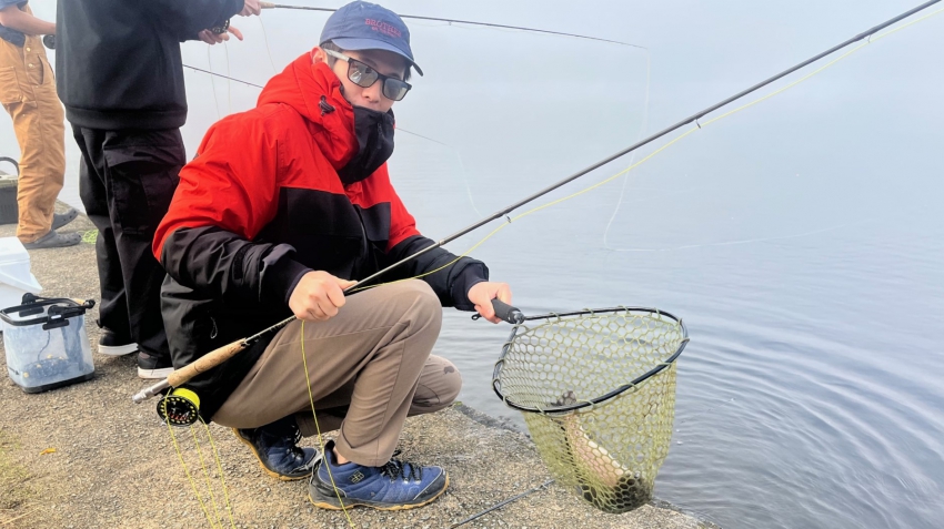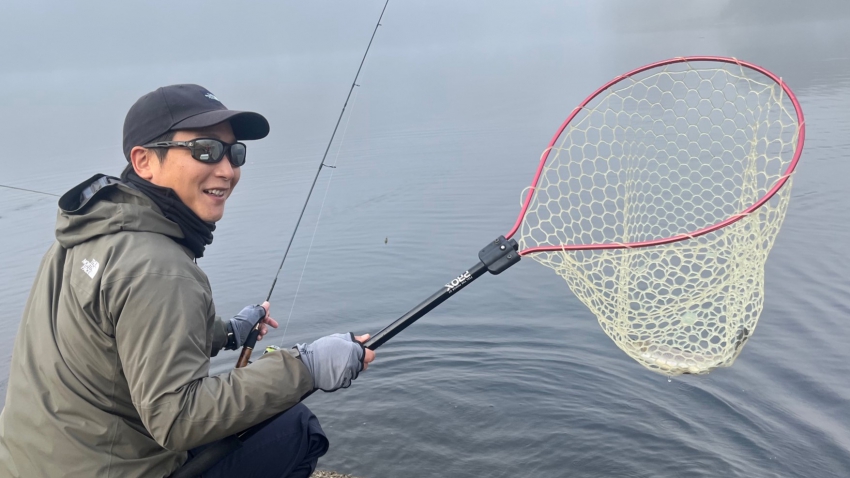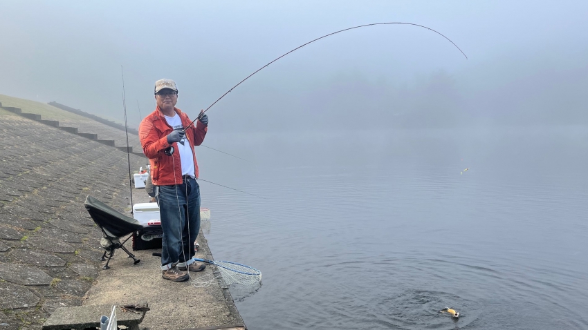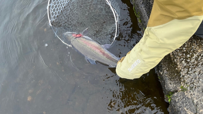 いいサイズの芸北サーモンはアウトレット桟橋でフライマンさんヒット~~✨✨久しぶりでうっれしイ~~✨✨