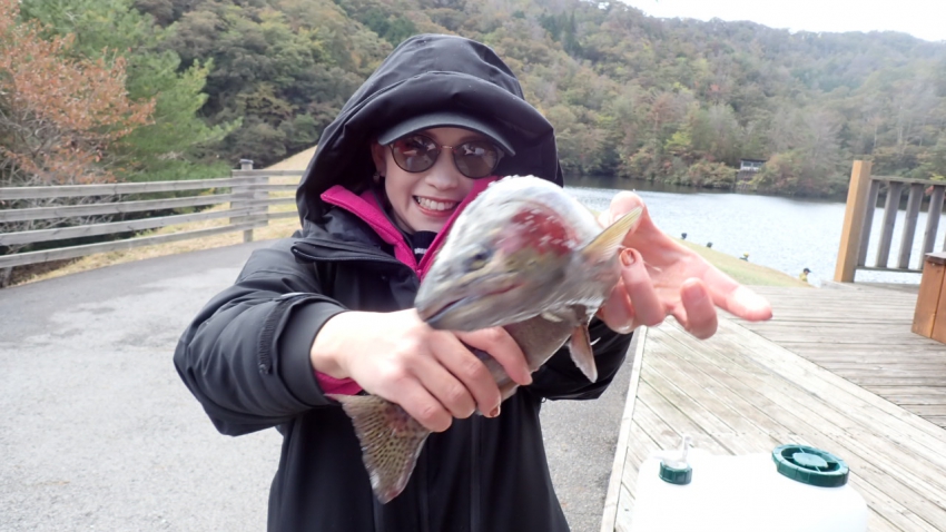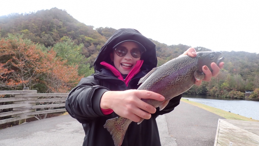 かわいい釣りガールはかっこいいハイパーヤマメと一緒にパシャリ♪♪♪(≧▽≦)