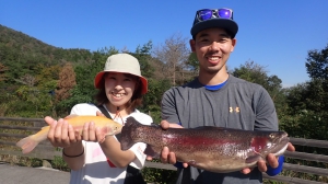 えん堤やアウトレット桟橋でもニジマス君の目撃情報あり~~!!