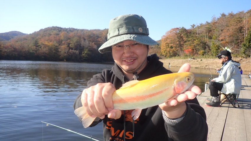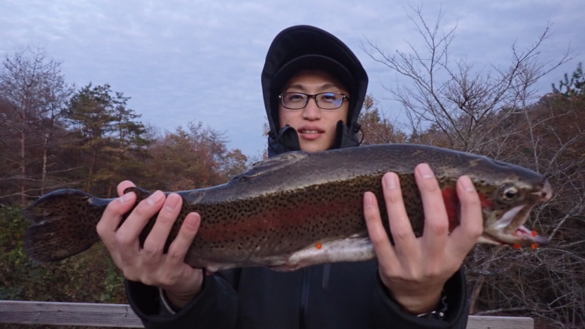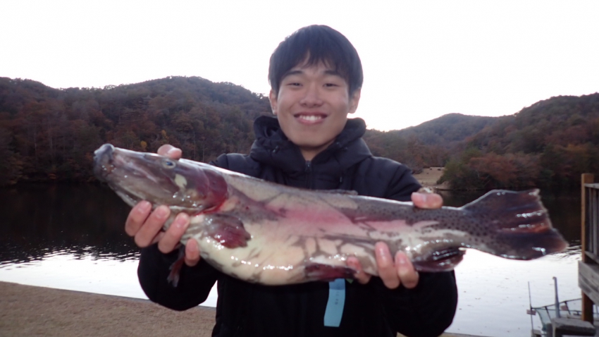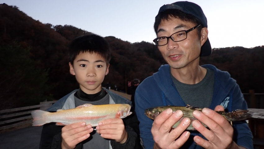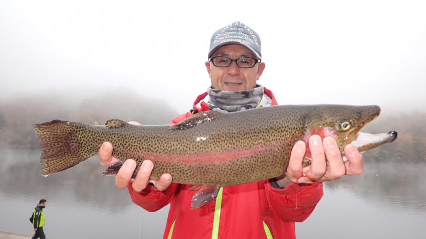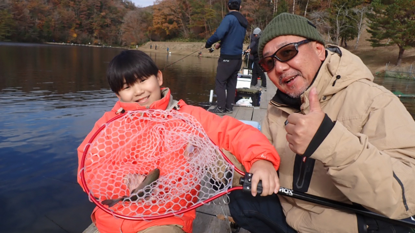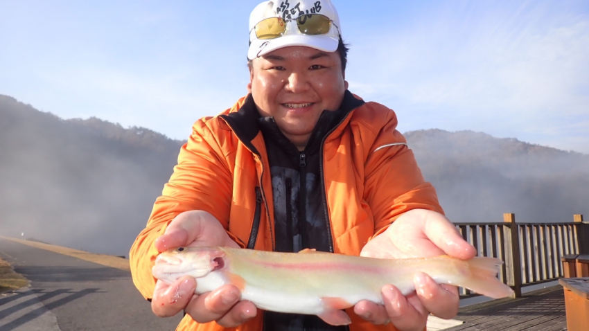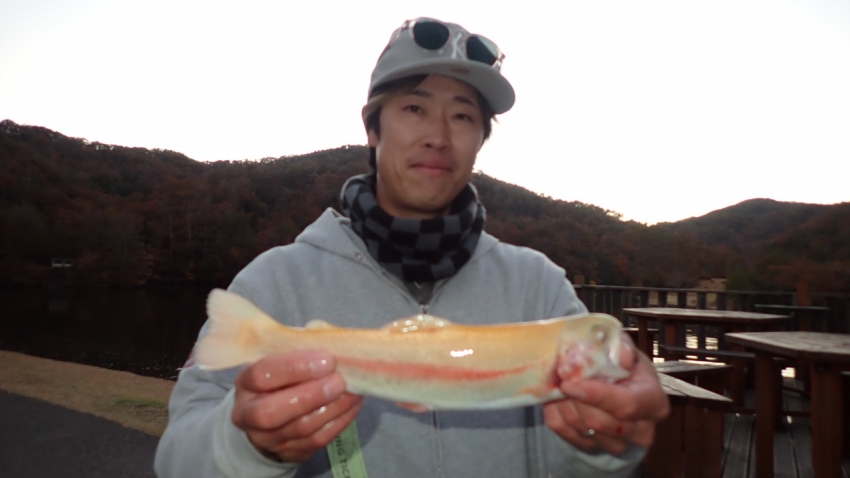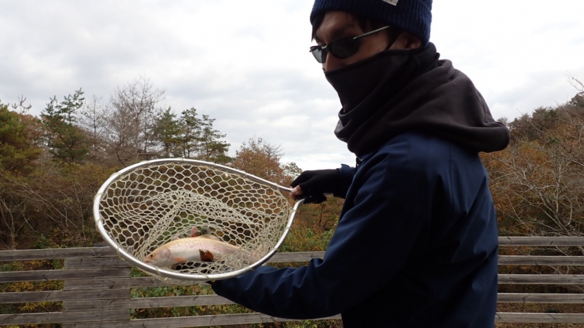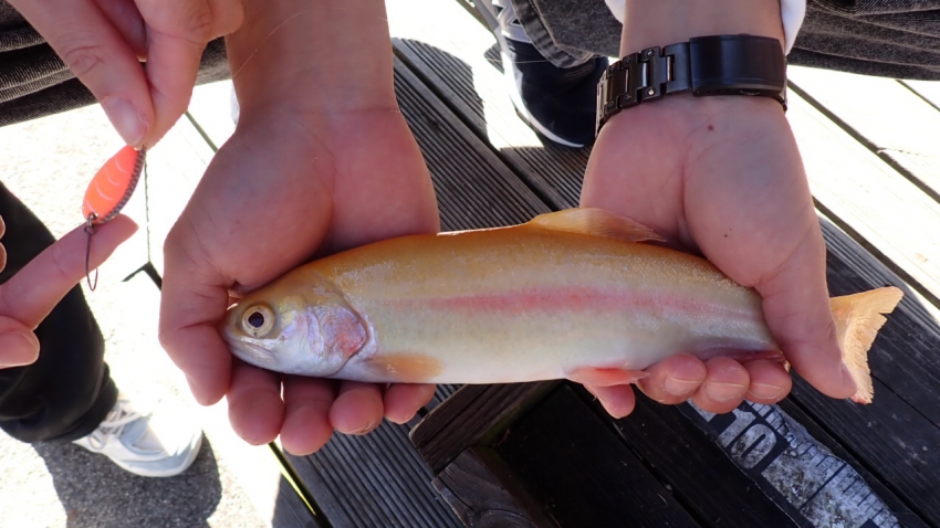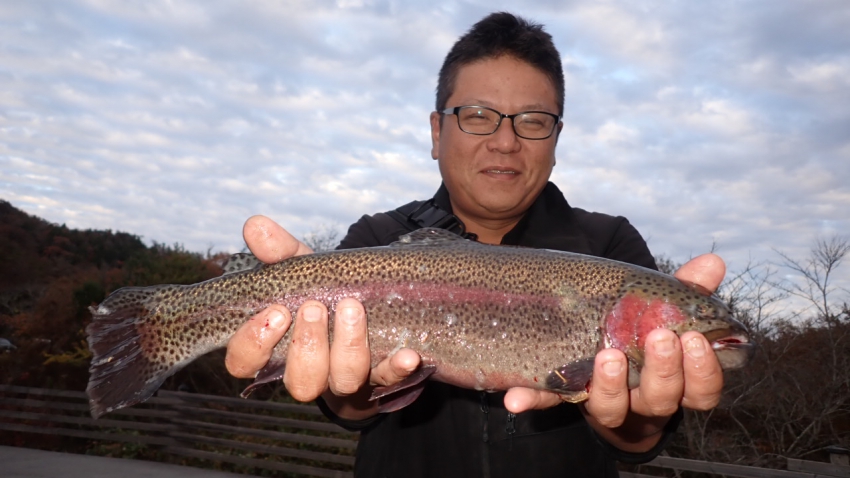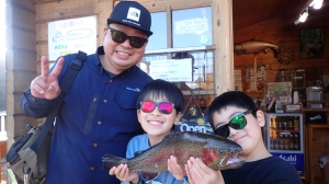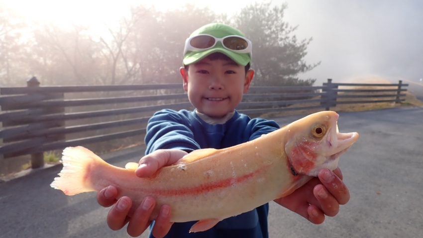 さっそく放流効果で大山サーモンが釣れて、そのあとにブラッドリーくんもあがっていました(≧▽≦)