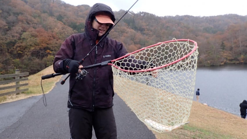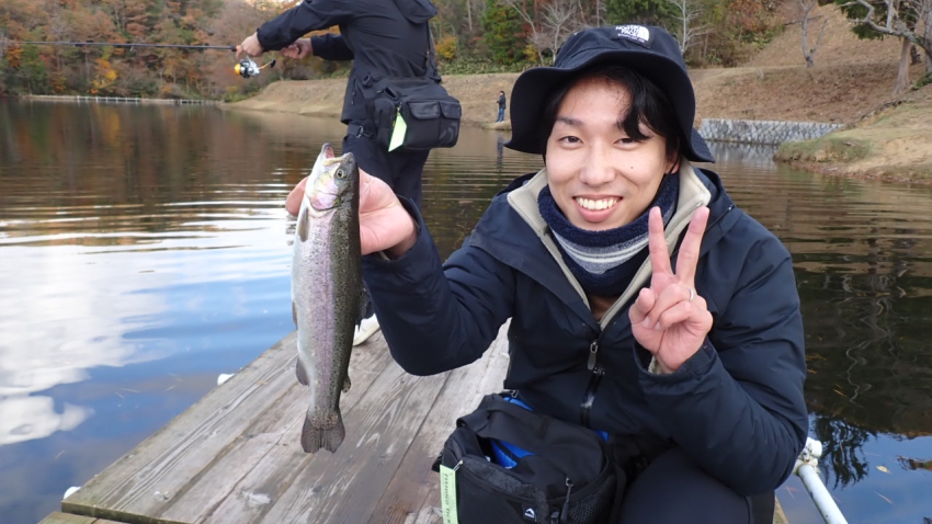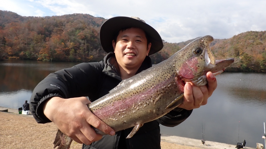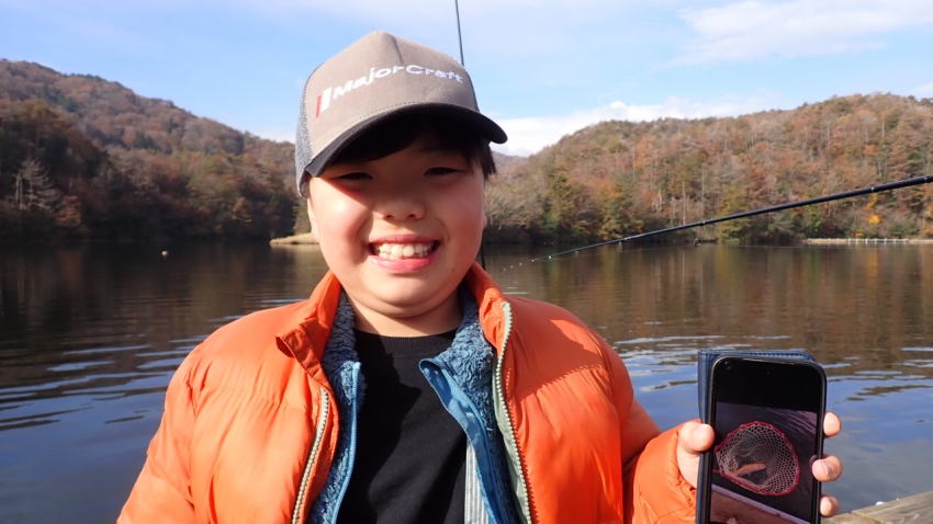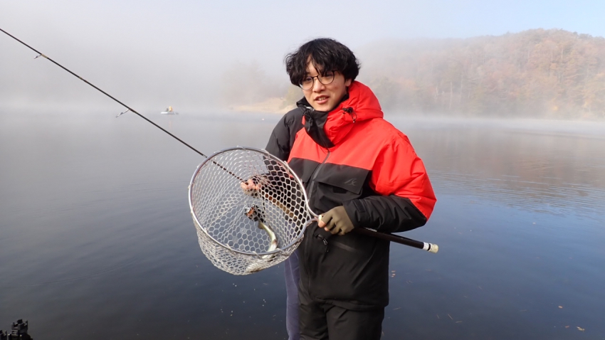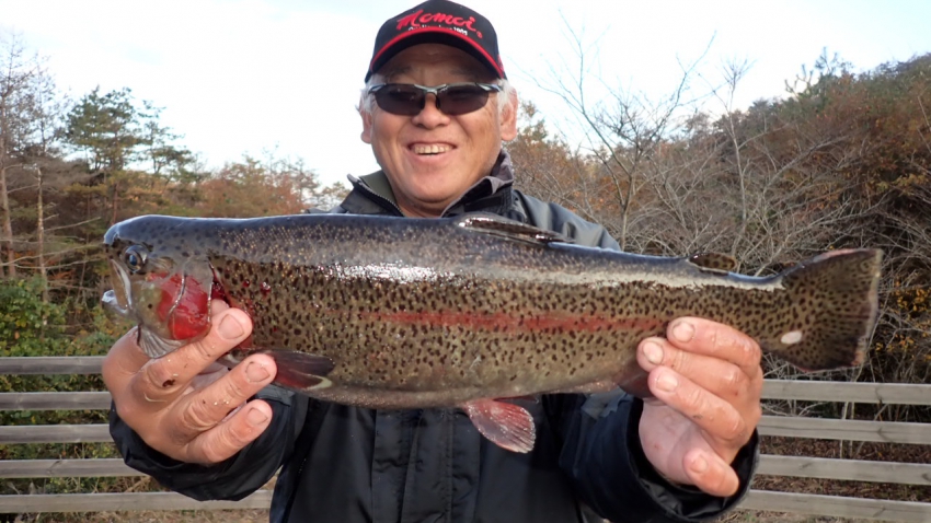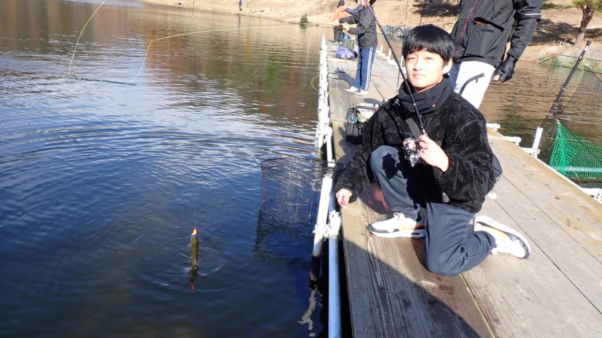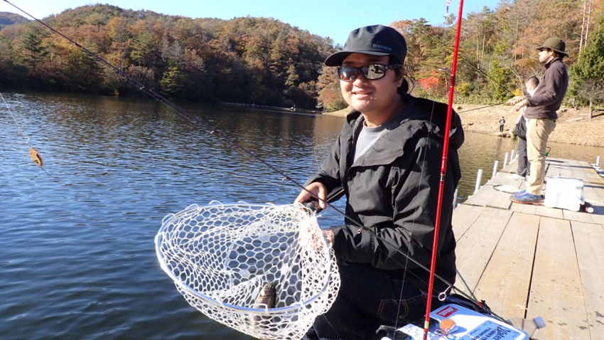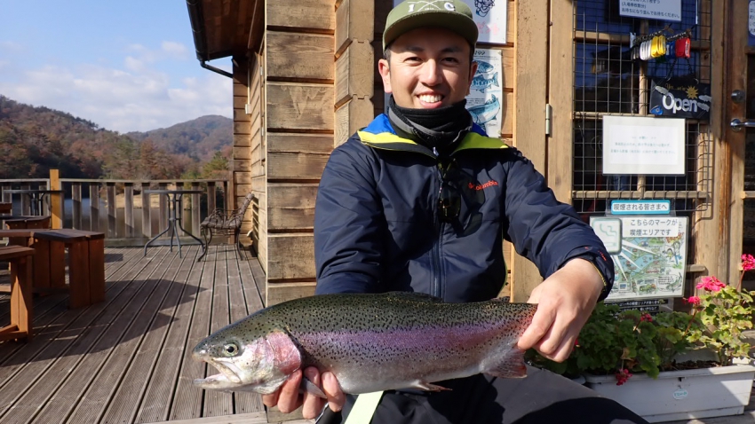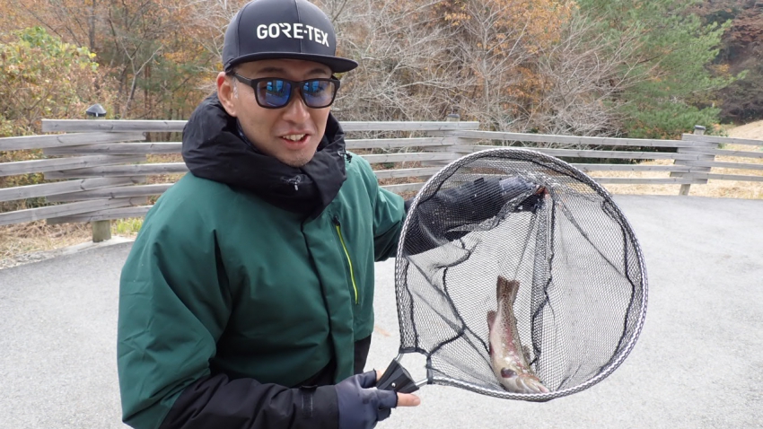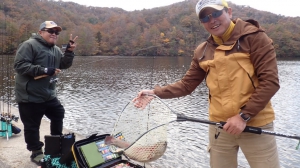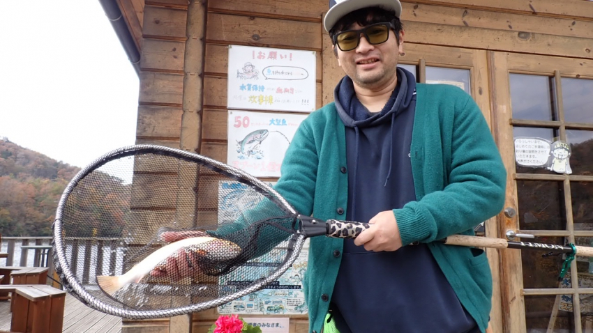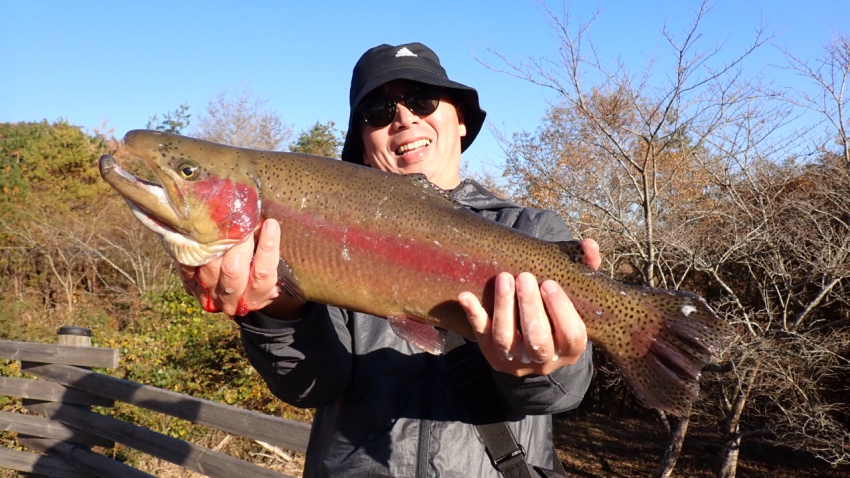さっそく放流効果で大山サーモンが釣れて、そのあとにブラッドリーくんもあがっていました(≧▽≦)