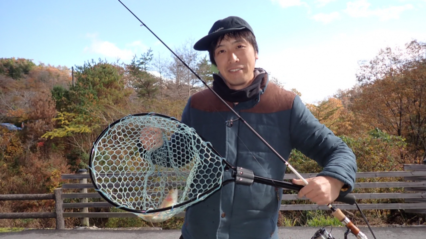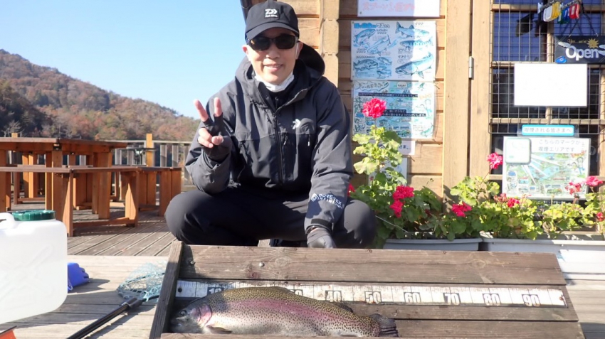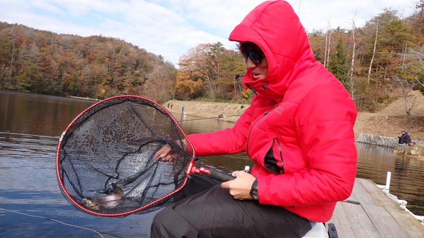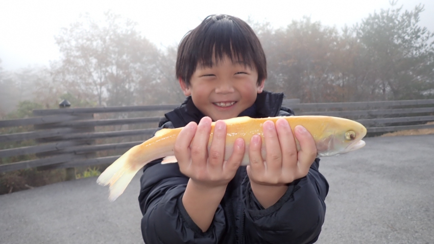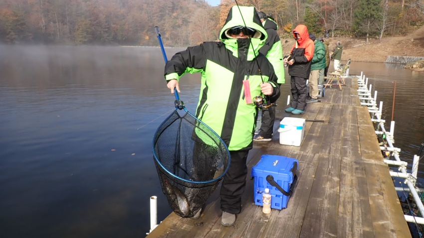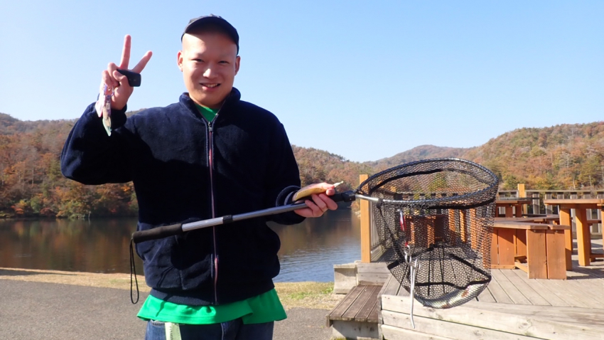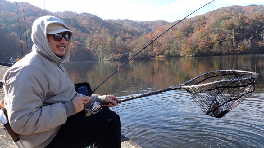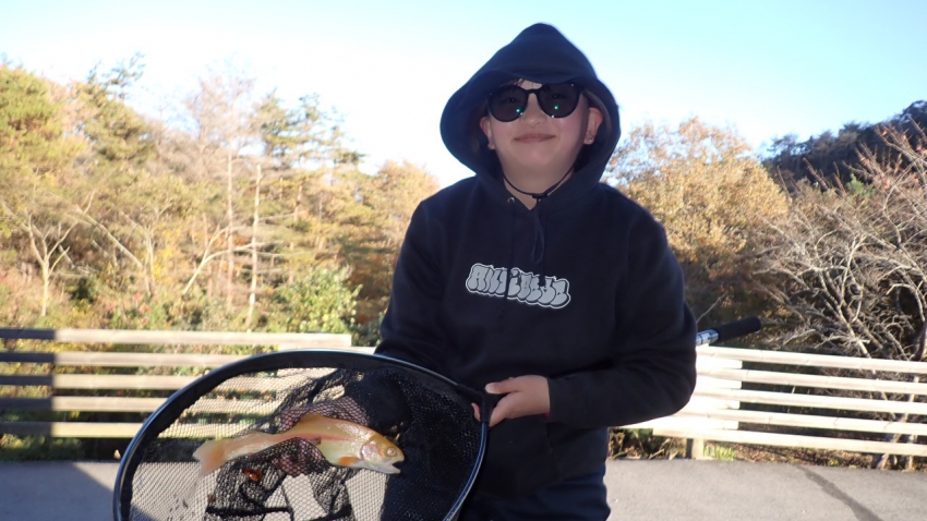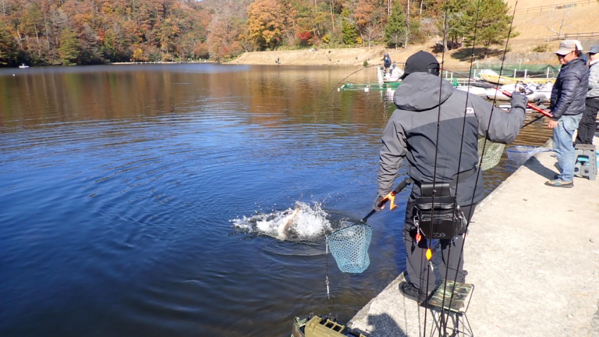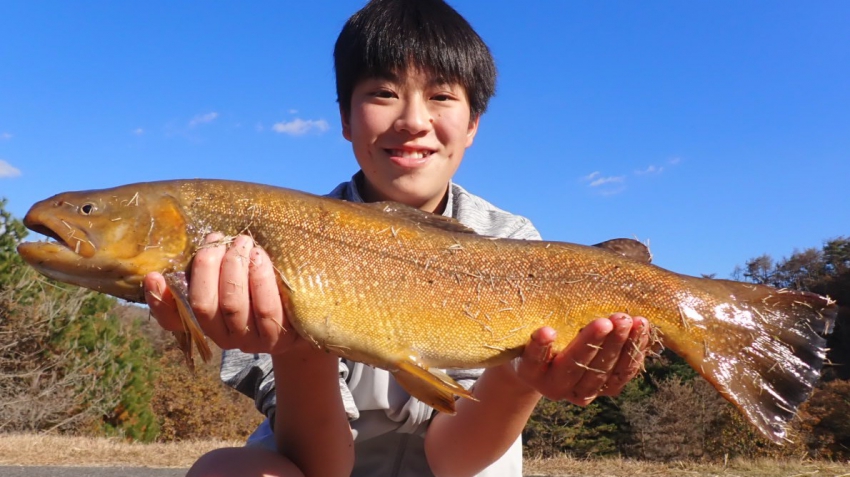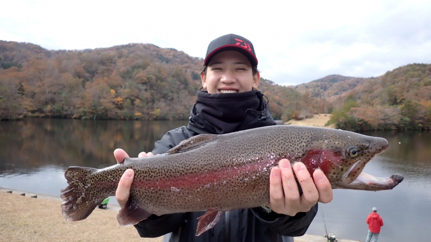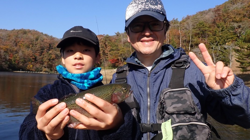 さっそく放流効果で大山サーモンが釣れて、そのあとにブラッドリーくんもあがっていました(≧▽≦)