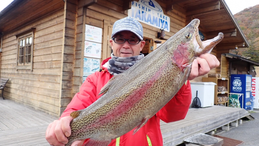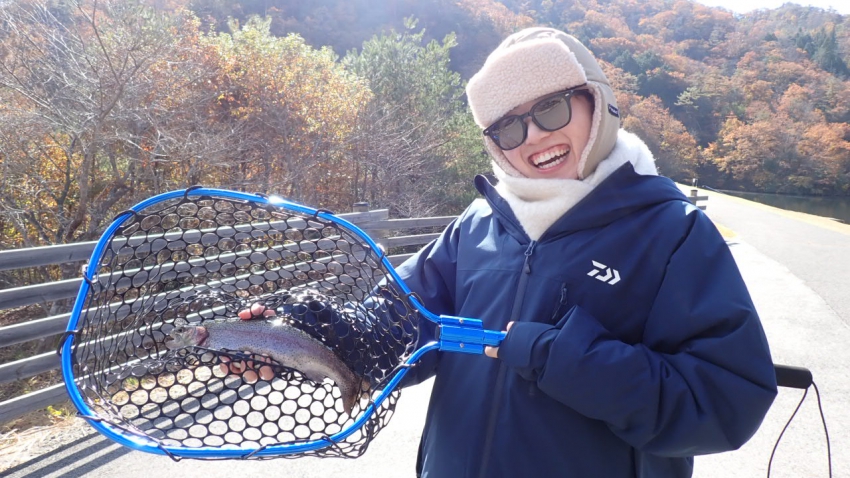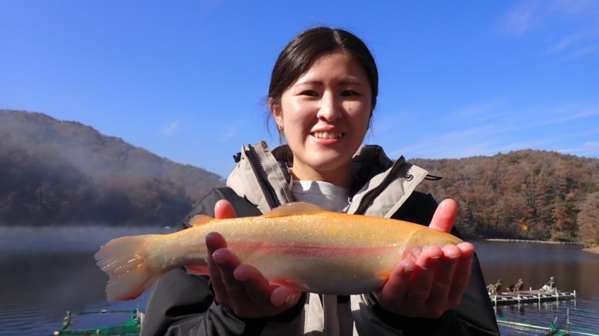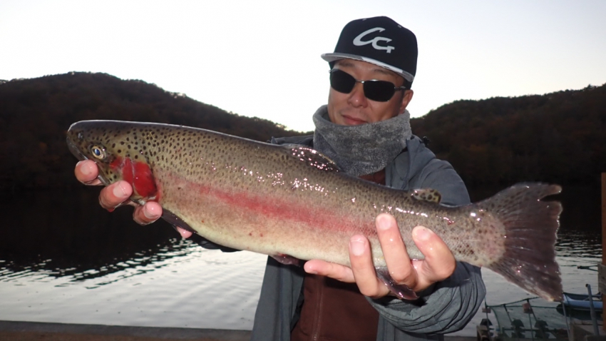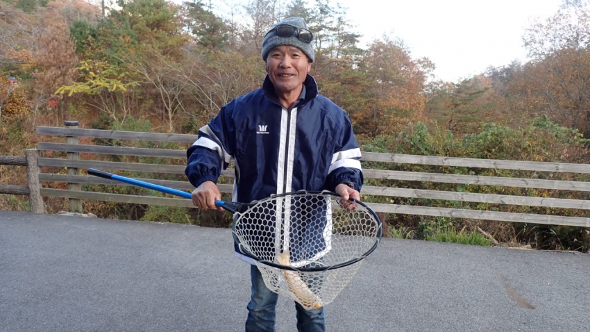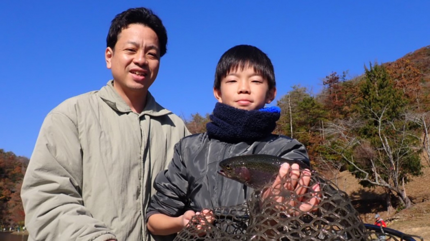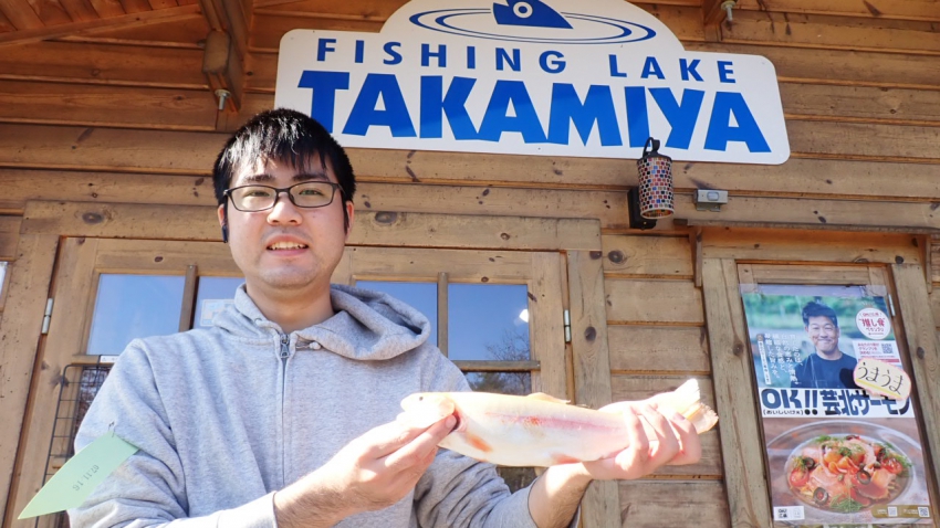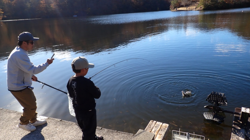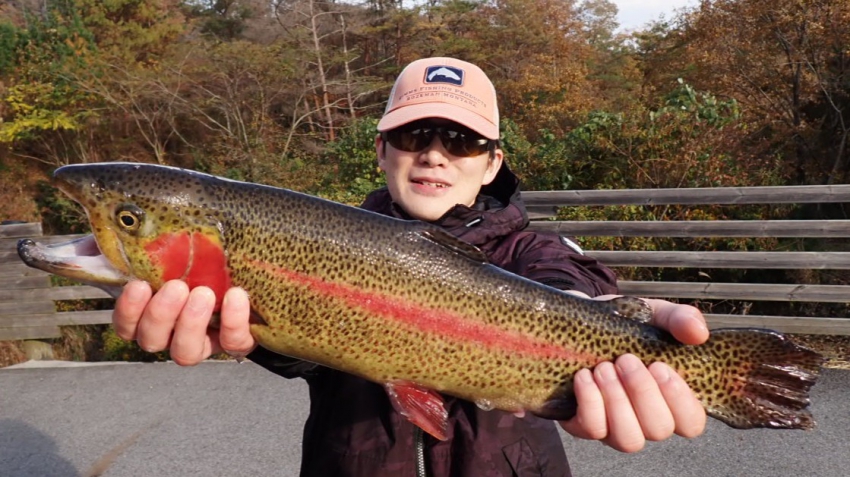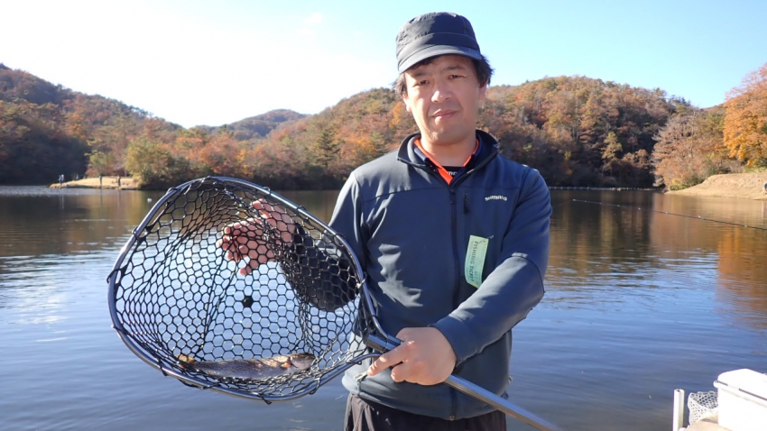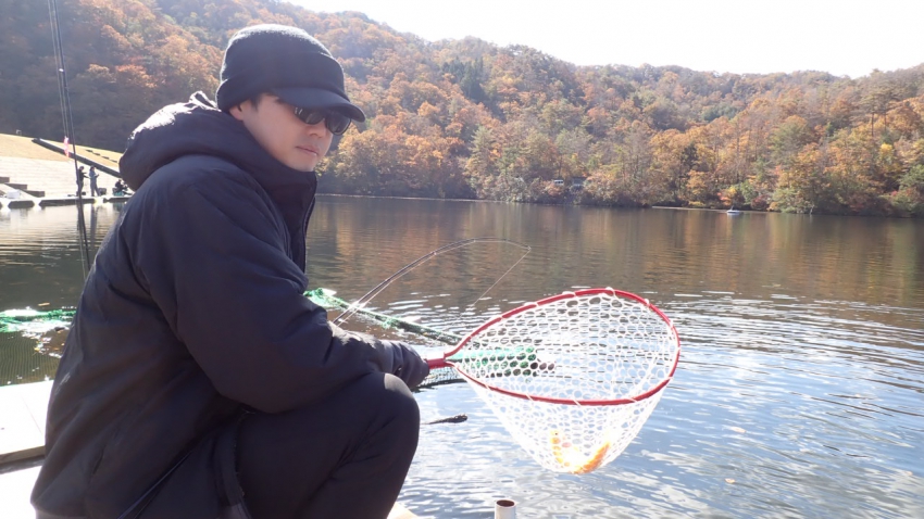 さっそく放流効果で大山サーモンが釣れて、そのあとにブラッドリーくんもあがっていました(≧▽≦)