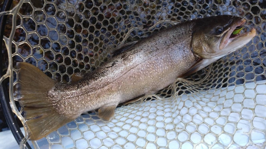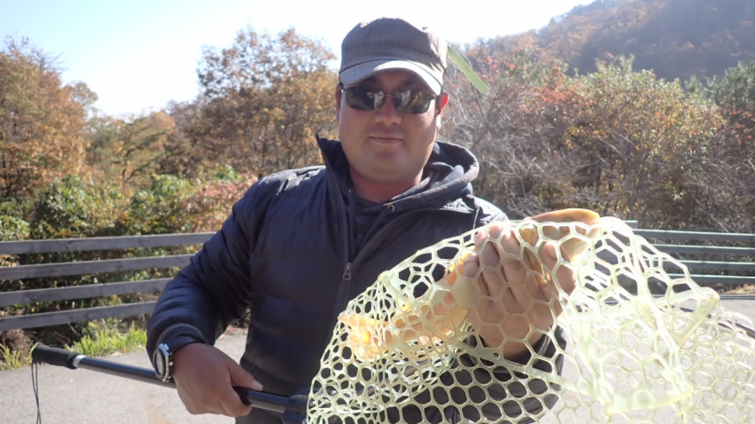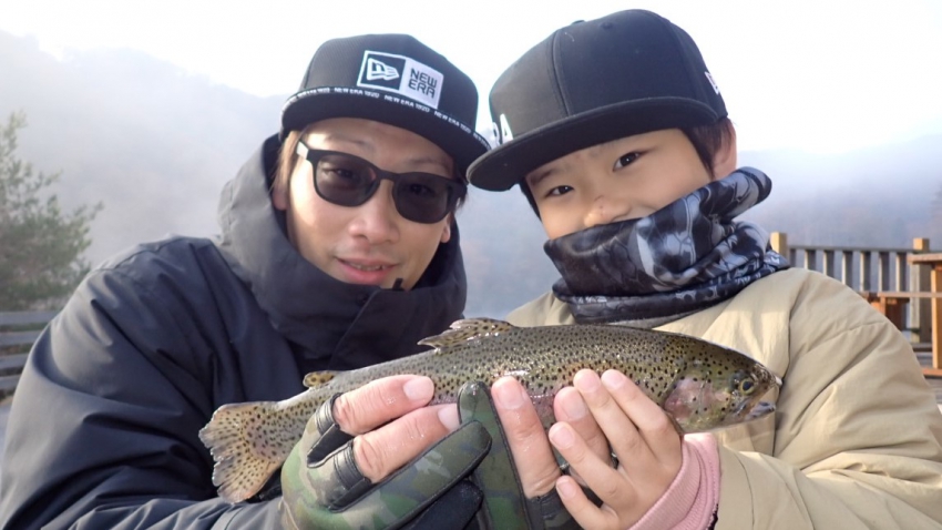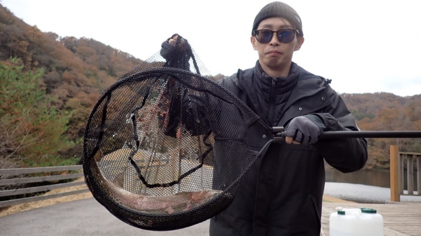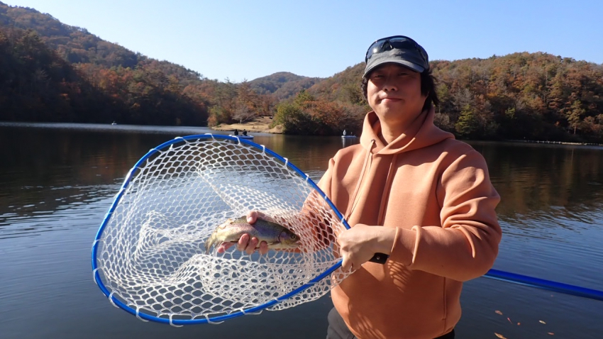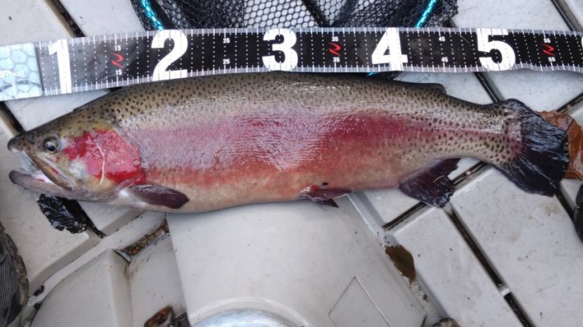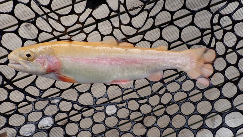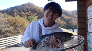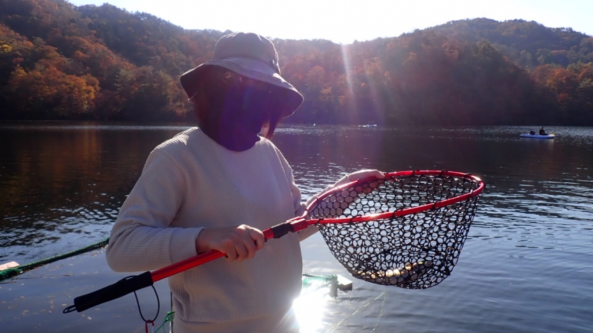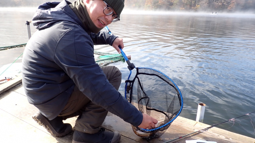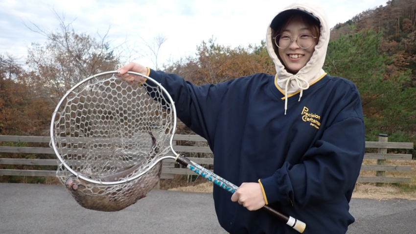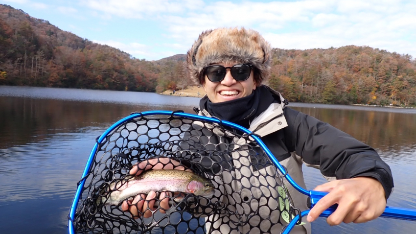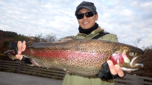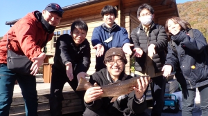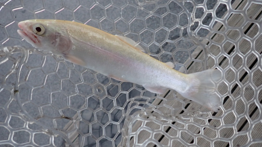 さっそく放流効果で大山サーモンが釣れて、そのあとにブラッドリーくんもあがっていました(≧▽≦)