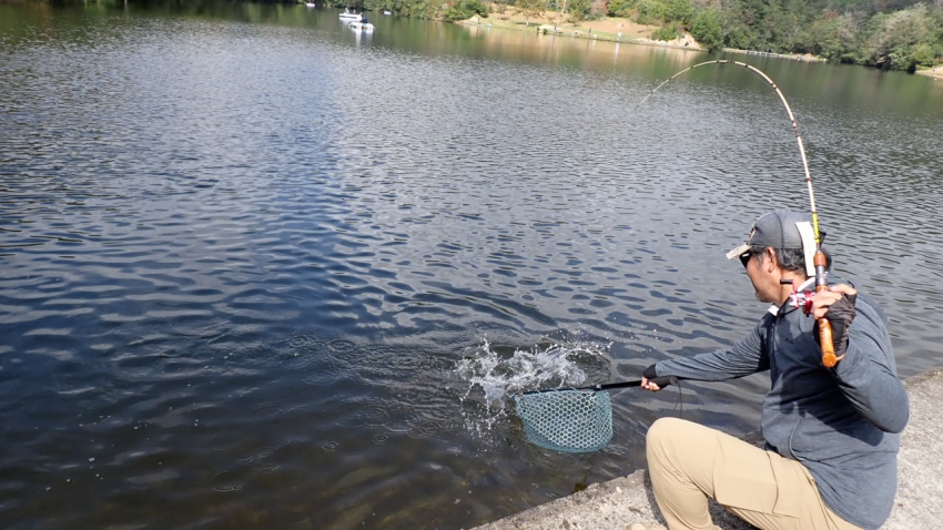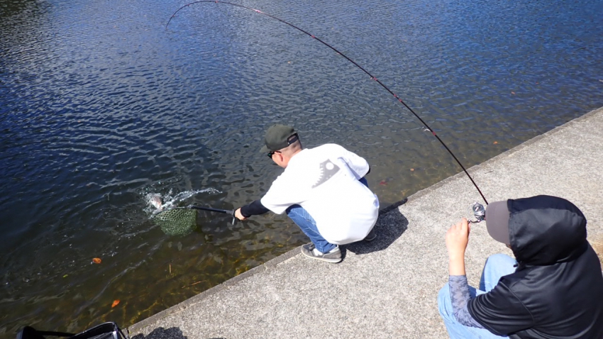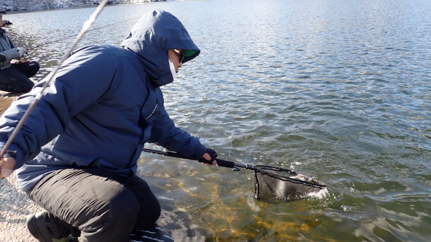 ランディングネットをご使用ください。レンタルもございます。写真撮影時などは、手を水で冷やしてから魚に触れてください。魚からフックを外す場合はできるだけ魚に触れずフックをつまんで外してください。