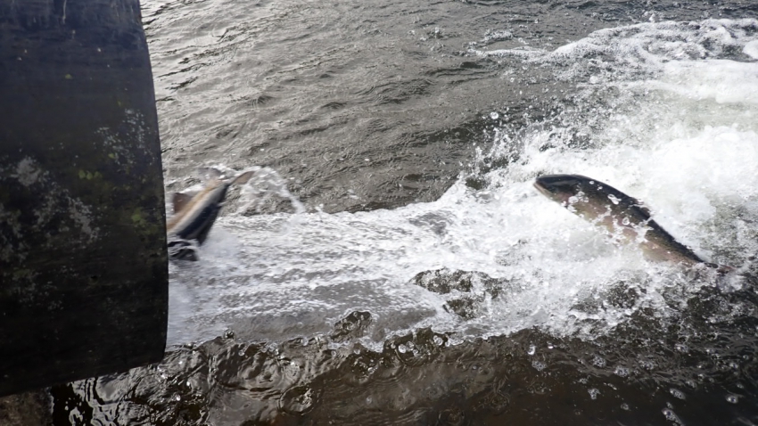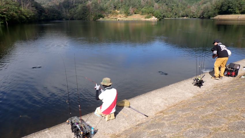 ヒットポイントはえん堤奥~~!!先週入った大型☆大山サーモンたちも新しい仲間たちに触発されて動き出す~~✨✨(≧▽≦)