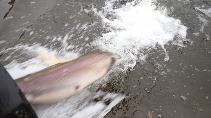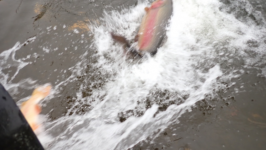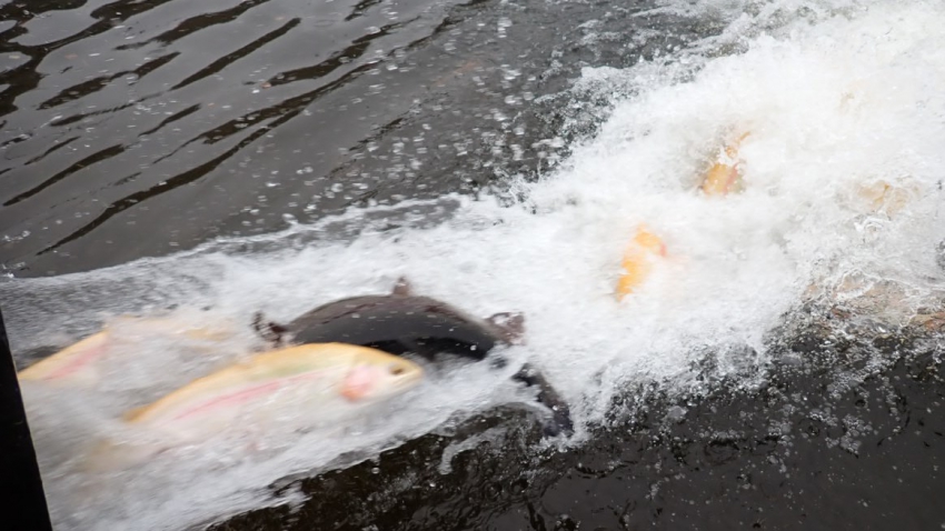 9時の放流には大型☆大山サーモン5匹とラッキーくんも仲間入り~~!!。。。(^^♪