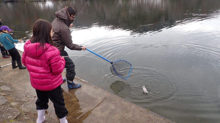 午後からの放流効果は。。。ば~~っちり✨✨釣りキッズたちは見事にみんなきっちり釣りあげる~~!!大人たち顔負けの快進撃~~✨✨お父さんたちは。。。ちょっと待ってよ~~!!と、キャストを繰り返す~~!!(≧▽≦)✨✨