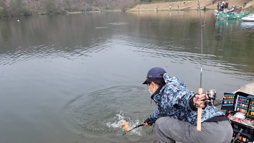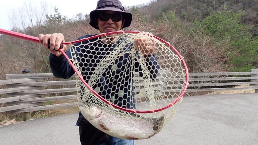 今週末からレギュラーレインボーが沢山入りはじめました!!元気いっぱいの魚たち~~✨✨取り込み直前!!もうちょっとのところで惜しくも釣れず~~!!(´艸`*)な、みなさまも、あ~~んしん✨✨入場券1枚につきお魚1匹保証~~✨✨4月5日(日)まで~~✨✨[釣果情報]