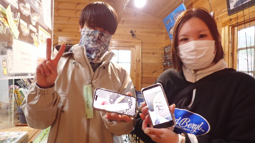 女性アングラーさんはラッキーくんGETで『可愛い~~♪♪♪』と、シャケちゃんスプーン☆GET!!✨✨フライマンさん!!朝は好釣果✨✨お昼頃までに20匹以上釣れたとのこと~~♪ルアーは昨日からピンク一択~~!!とにかくピンクのルアーが強かった!!(´艸`*)