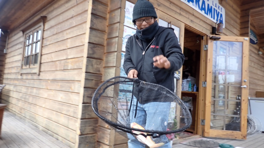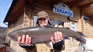 大山サーモンが美味しい~~!!(´艸`*)と聞きつけて先週お持ち帰りされ。。。め~~ちゃくちゃ美味しかった~~!!家族のみなさんからも大好評~~✨✨なんと、すでに袋に入れてあったアラも『もう一回取り出して塩焼きして食べたよ~~!!美味しかったわ~~♪♪♪』そして~~本日もキッチリ釣って即・お持ち帰り決定~~✨✨さすが!!当面の間、50センチオーバーのお魚の持ち帰り匹数は2匹までとさせていただきます。3時間券と子供券は1匹です。ご協力をお願いいたします。m(__)m 全体のお持ち帰り匹数はかわりませんのでよろしくお願いいたします。