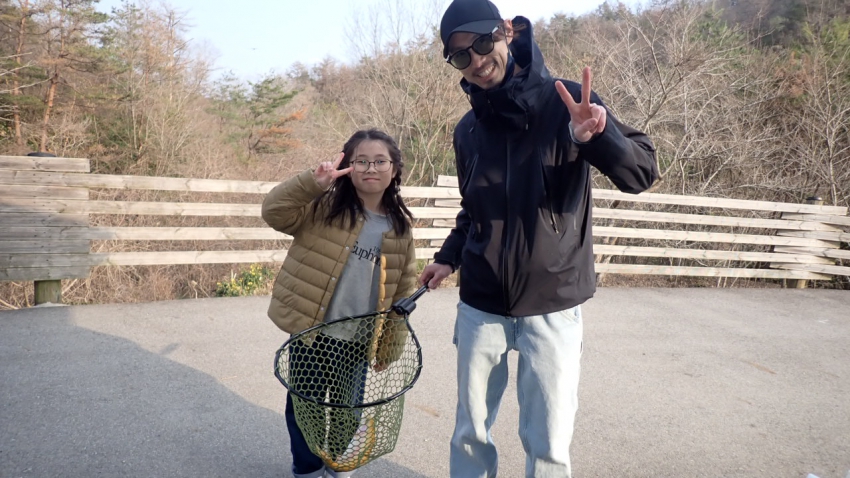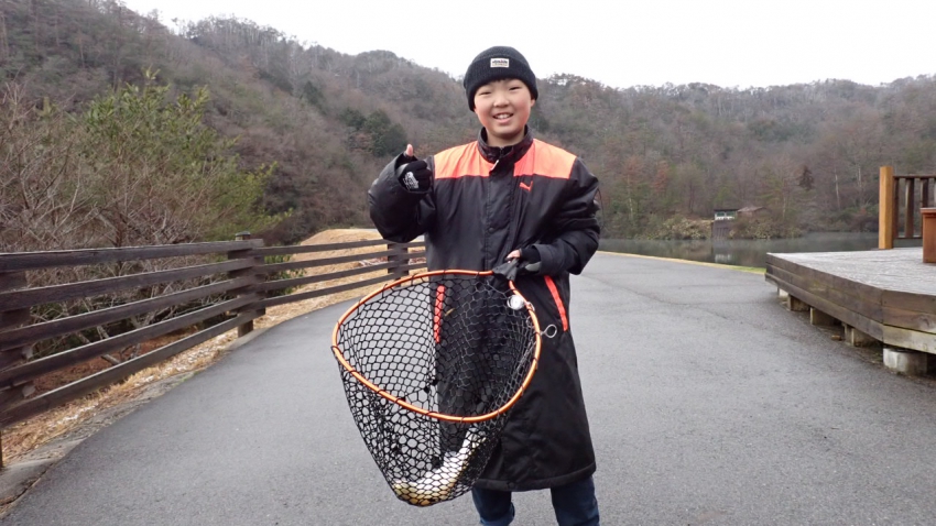 レンタルタックルの少年アングラーはわれらが忠さんのスプーン3gで放流直後に美味しそ~~なラッキーくんをGET~~✨✨