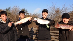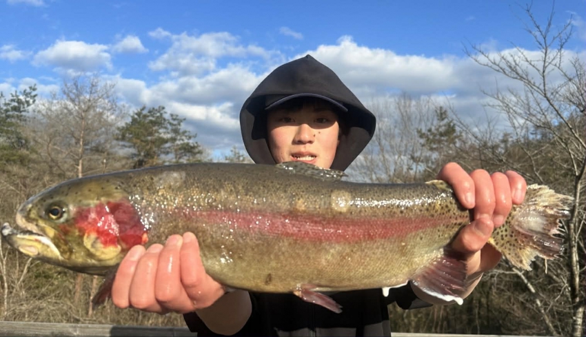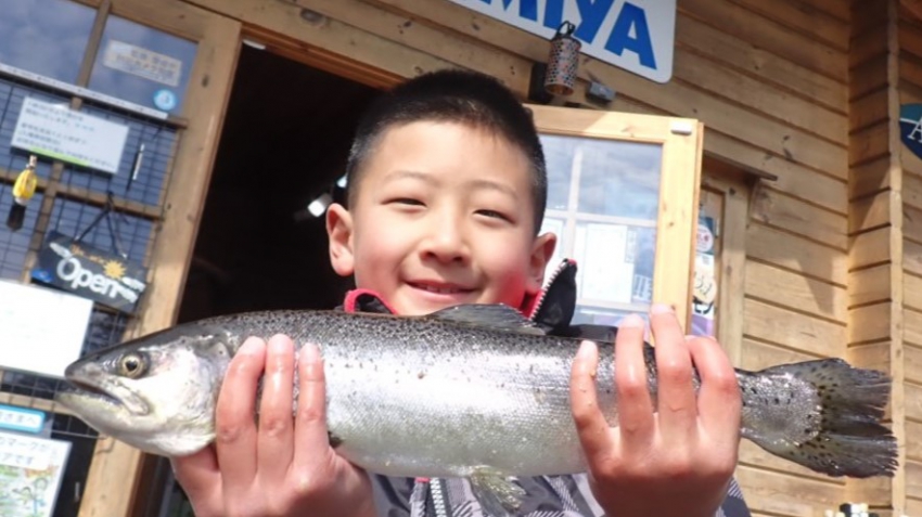 フライの少年アングラーは絶好調~~!!10匹釣れたよ~~!!と、嬉しそう~~✨✨当面の間、50センチオーバーのお魚の持ち帰り匹数は2匹までとさせていただきます。3時間券と子供券は1匹です。ご協力をお願いいたします。m(__)m 全体のお持ち帰り匹数はかわりませんのでよろしくお願いいたします。