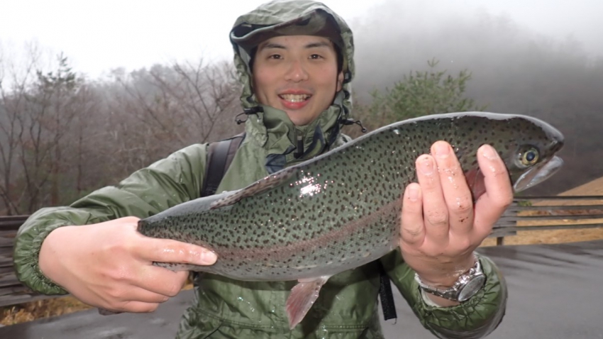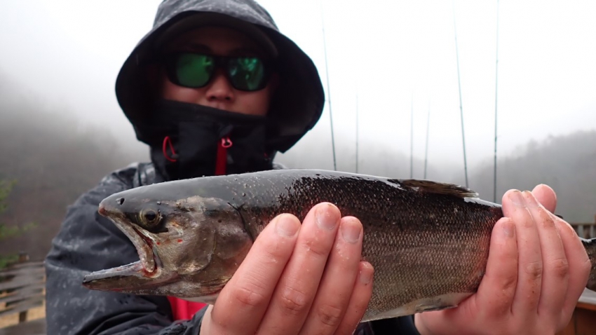 朝からゴールドのスプーンで60近い大山サーモン✨✨GET~~✨✨