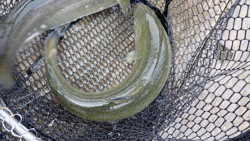 先週にひき続きネイチャーエリアではお昼ご飯までに10匹の釣果でなんとバラシはなし!!✨✨なかなか良いサイズの大山サーモンやイワナをGET~~✨✨当面の間、50センチオーバーのお魚の持ち帰り匹数は2匹までとさせていただきます。3時間券と子供券は1匹です。ご協力をお願いいたします。m(__)m 全体のお持ち帰り匹数はかわりませんのでよろしくお願いいたします。