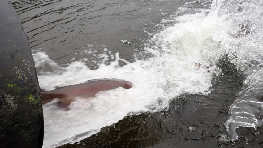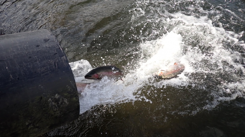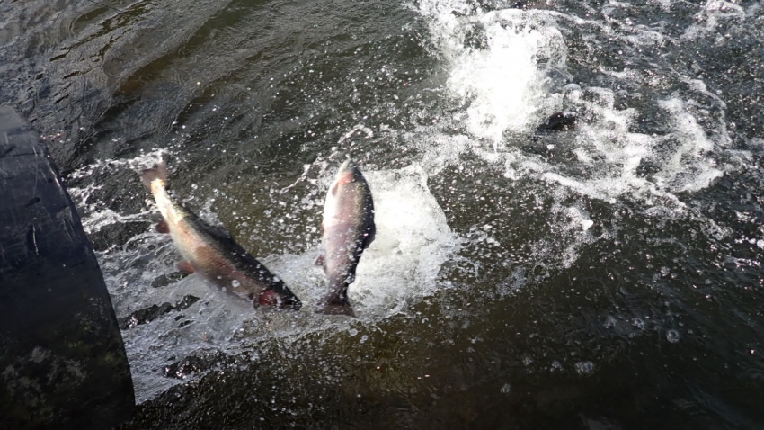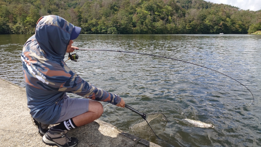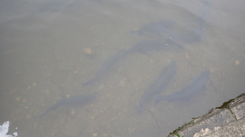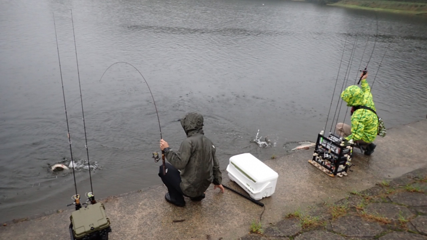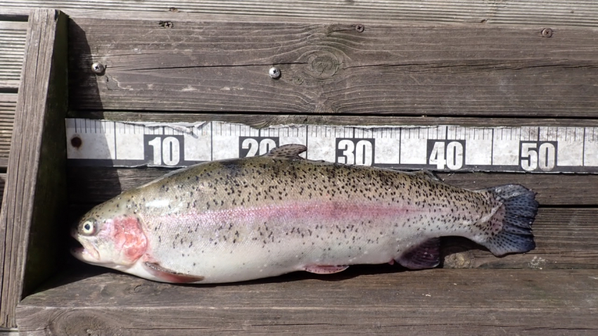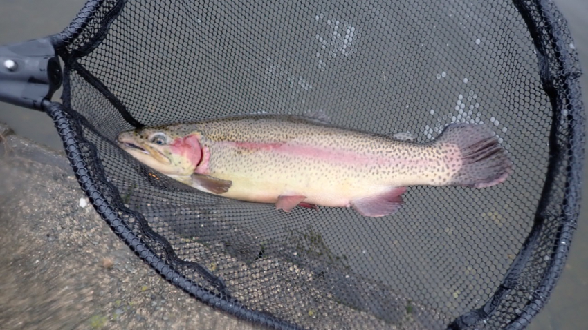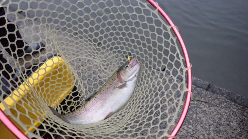 えん堤やアウトレット桟橋でもニジマス君の目撃情報あり~~!!