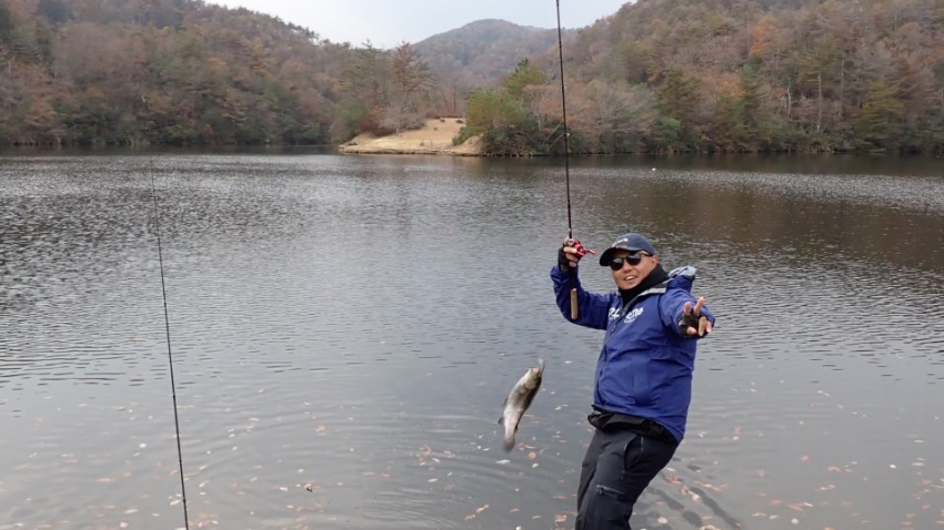 今日はエンテイ真ん中のあたりが好釣果~~✨✨ラッキーくんGETで芸北サーモンカラーの鮭ちゃんスプーンもゲット~~!!そしてまたまた鮭ちゃんスプーンでお魚GET~~!!このスプーンけっこういい感じで釣れますよ~~♪♪♪と、またまたお魚GET~~✨✨(≧▽≦)