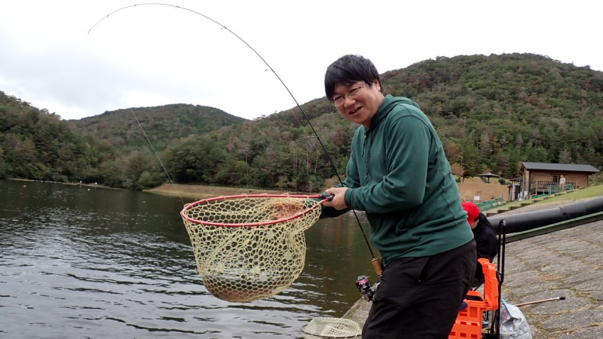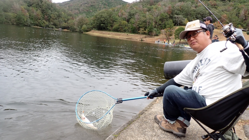 いいサイズの芸北サーモンはアウトレット桟橋でフライマンさんヒット~~✨✨久しぶりでうっれしイ~~✨✨