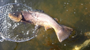 ターンオーバーで釣れずらい中でもアウトレット桟橋からルアーで15匹!!フライマンさんはあさイチ1時間で10匹!!フライも釣れはじめたかな。。。
