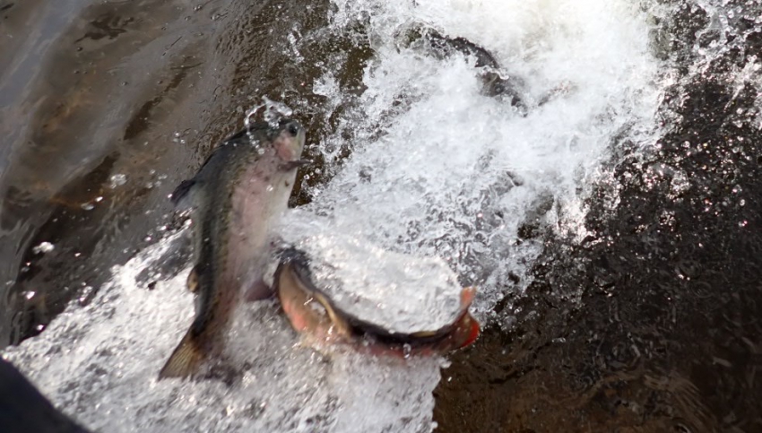 放流直後はハイパーヤマメはもちろん!!芸北サーモンの活性も確実にあがっていました(≧▽≦)