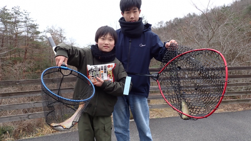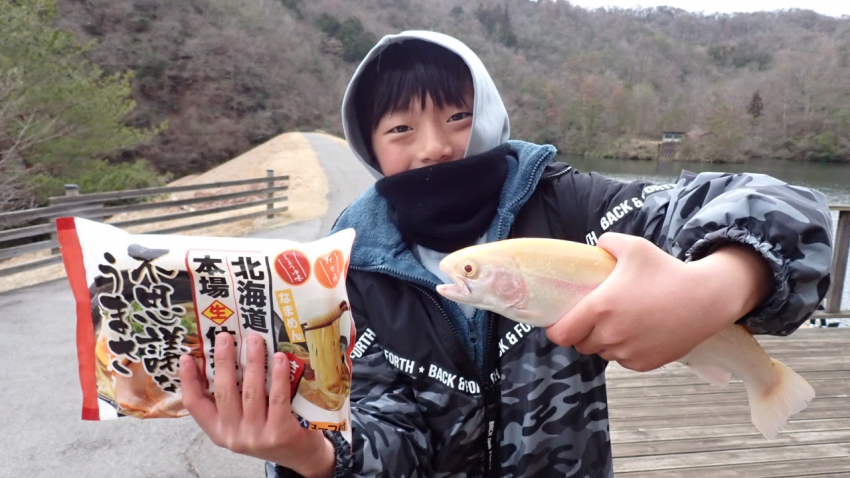えん堤手前は安定の釣果で30匹は釣れたけど。。ラッキーくんだけは釣れずにまさかのラーメンGETならず!!景品かかるとプレッシャーに弱い。。。との声~~!!