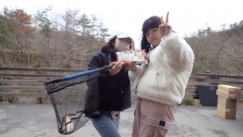 放流直後にラッキーくんGETでラーメンもGET~~✨✨桜の木の下ではいっぱいヒットするけどバレる~~!!