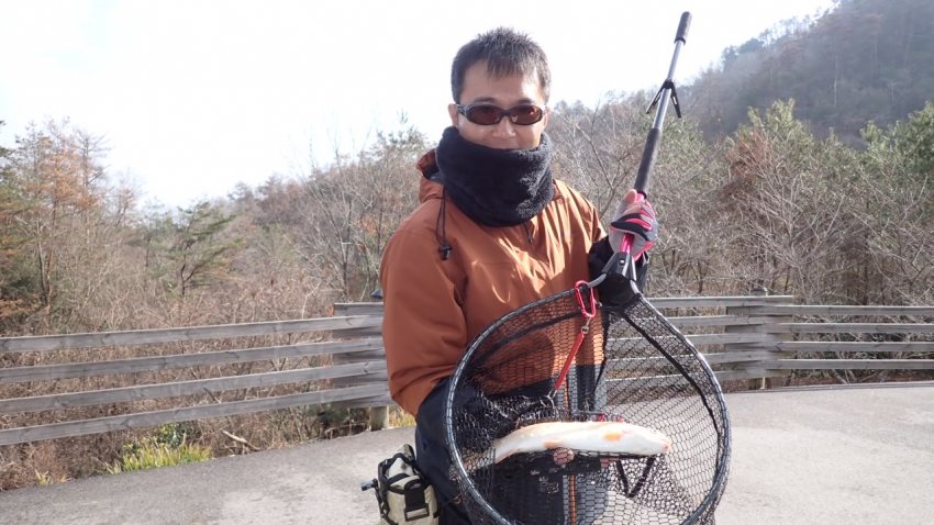 昨日。。。FLたかみやのホームページを見たら~~トラック直接放流の速報~~!!これは行かねば!!と、なんと~~!!朝4時に起きて3時間かけて自転車で釣りに来てくれました✨✨愛車の箱付き自転車&ブラッドリーくんと一緒に記念撮影~~✨✨ヒットポイントは中の島~~!!✨✨ハリはこんなに伸ばされていました!!(´艸`*)[釣果情報]