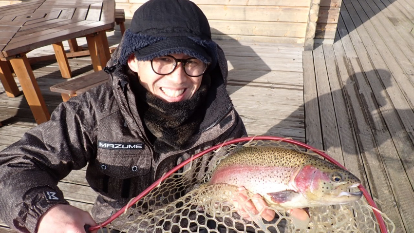 管釣りデビューのアングラーさん!!見事に40センチオーバーでラーメン☆チャレンジ達成~~✨✨(≧▽≦)管釣り面白い!!(≧▽≦)✨✨とのこと~~✨✨