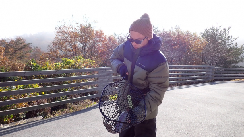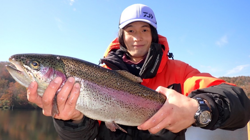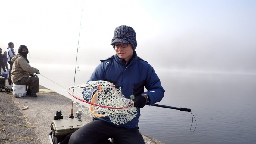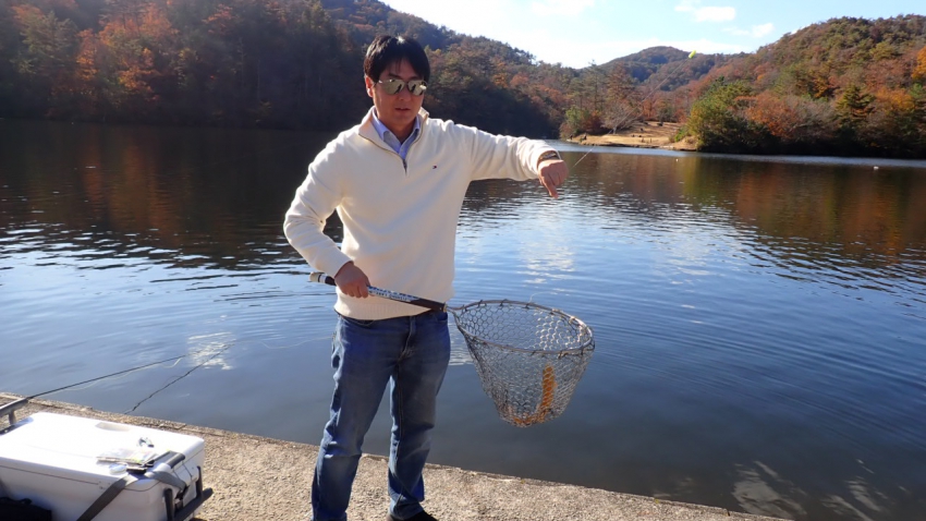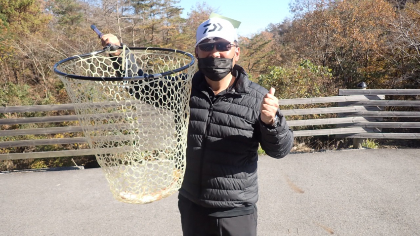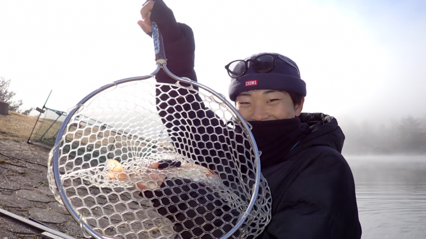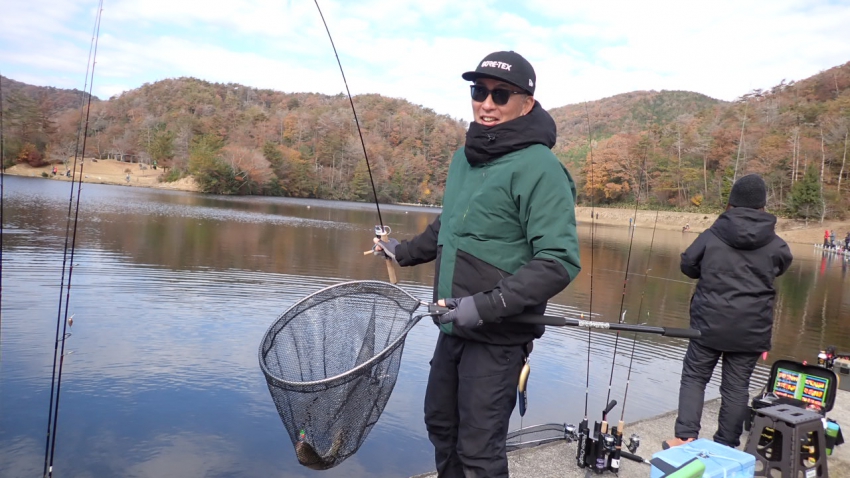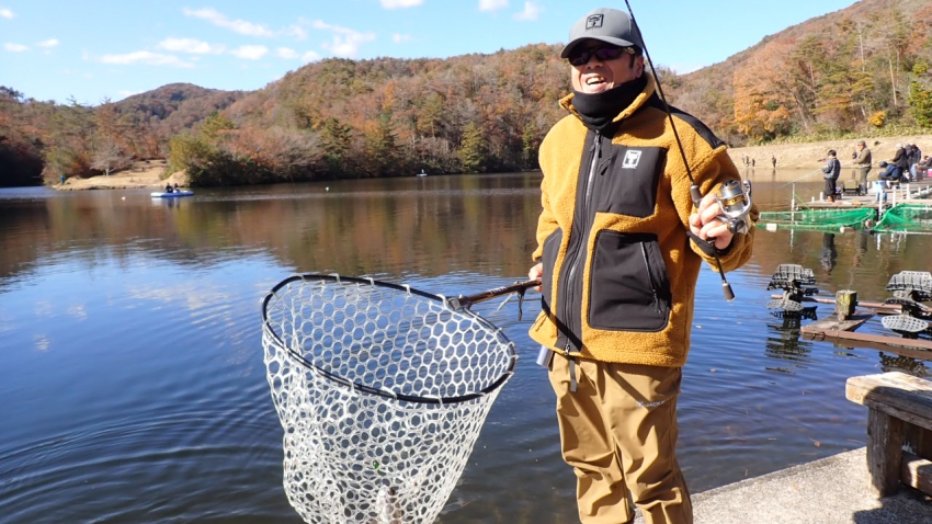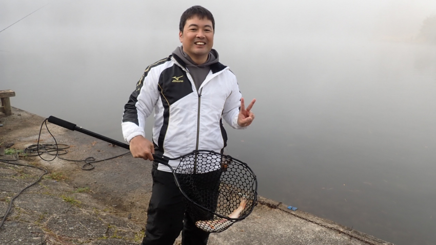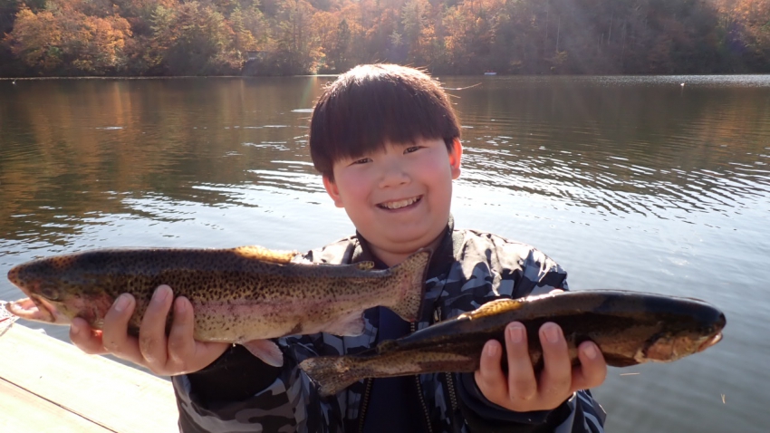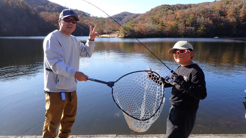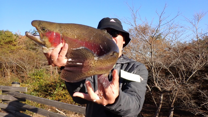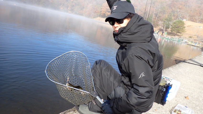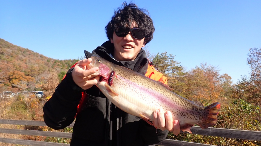 さっそく放流効果で大山サーモンが釣れて、そのあとにブラッドリーくんもあがっていました(≧▽≦)