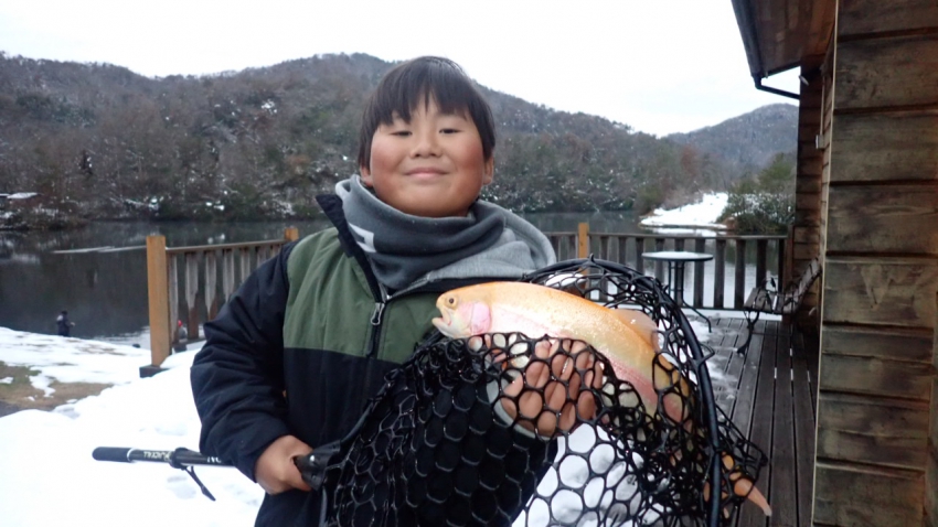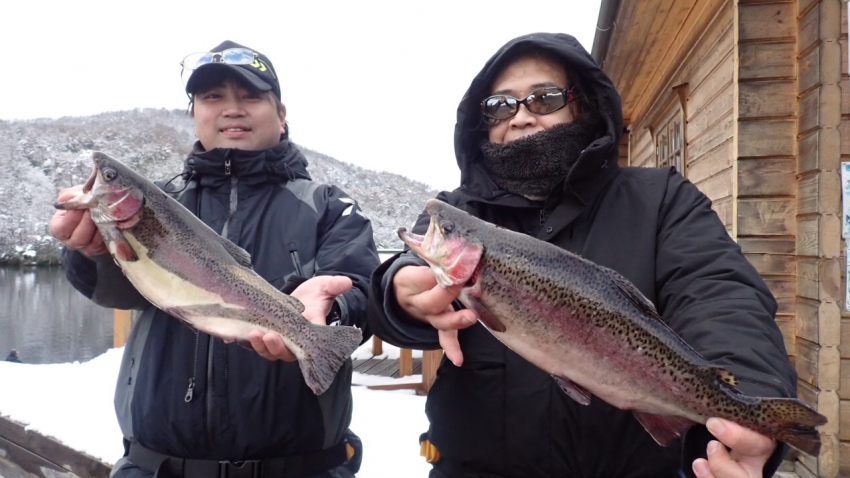 管釣りデビューのアングラーさん!!見事に40センチオーバーでラーメン☆チャレンジ達成~~✨✨(≧▽≦)管釣り面白い!!(≧▽≦)✨✨とのこと~~✨✨